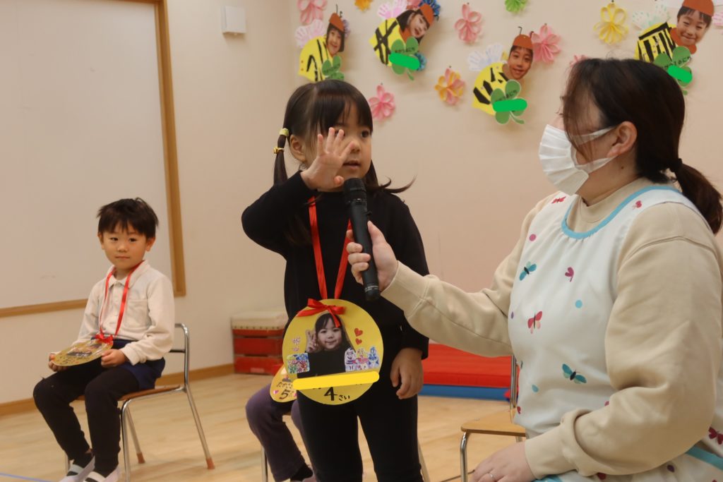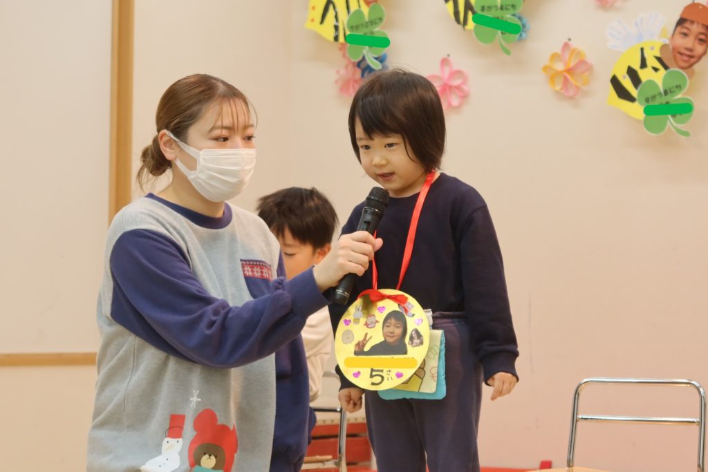 「何歳になりましたか?」「好きなお友達は誰ですか?」など、たくさんの質問に元気に答えてくれましたよ😊