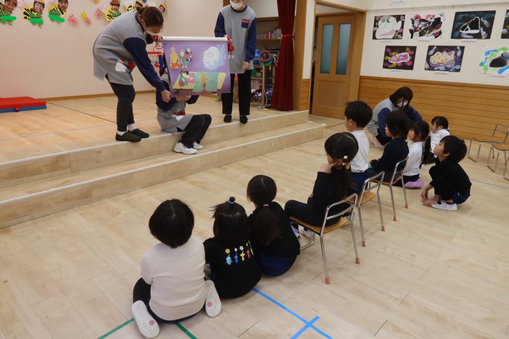 誕生会の後は成道会の大型紙芝居を見ましたよ👀