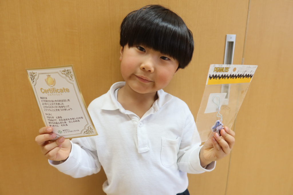 来年度小学生になる年長さんたちには反射材と認定証が渡されました✨