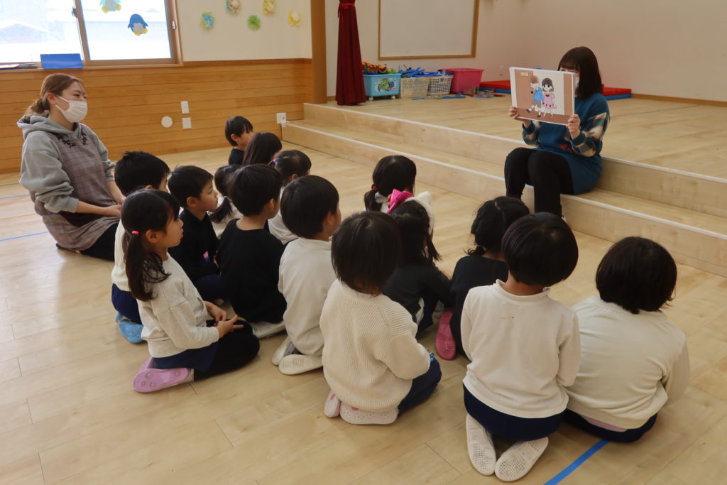 避難をした後、ホールに移動して紙芝居を見たり先生のお話を聴いたりして火事の時の避難の仕方を改めて学んだ子どもたちでした✨
