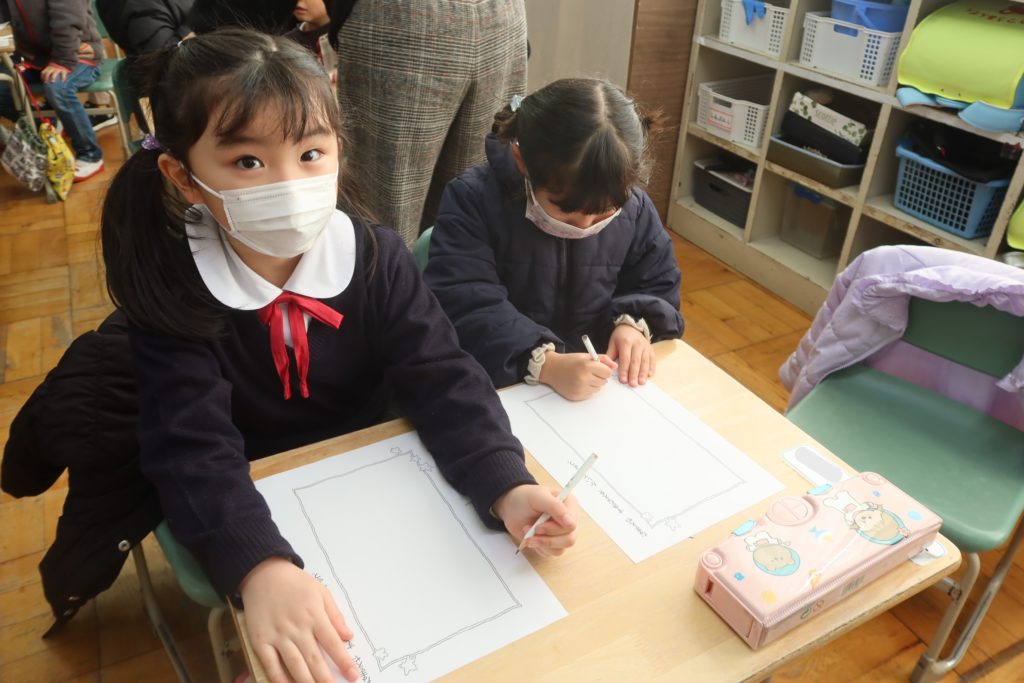 小学校になったら使うものを教えてもらったり、実際に鉛筆を持って名前や文字を書きましたよ✏