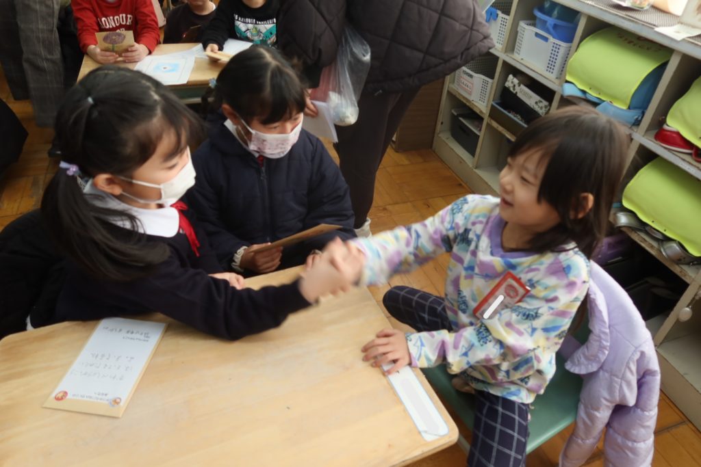 小学校では久しぶりに卒園生にあって嬉しそうな子どもたち😆