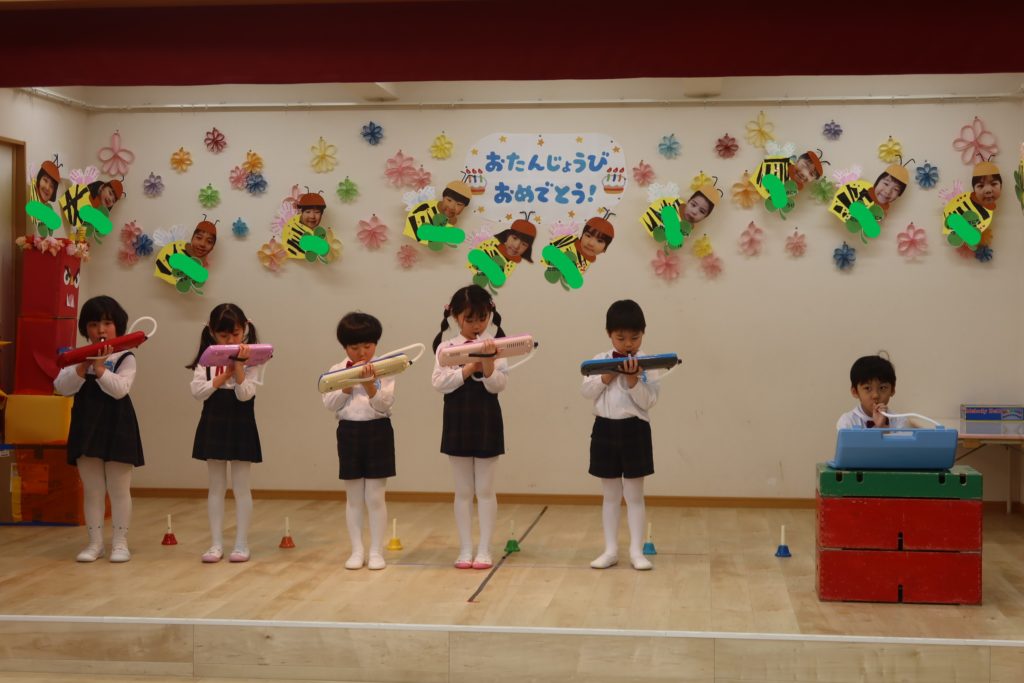 年長さんはピアニカ奏とハンドベル、みんなで「星に願いを」も合奏しました!
