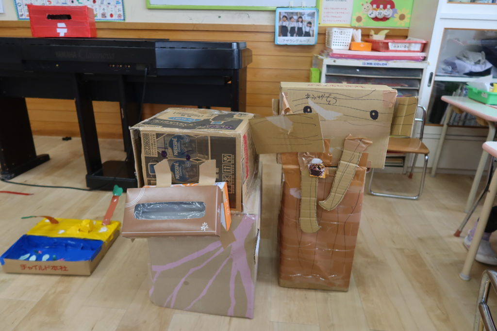 ダンボールで恐竜やゾウを作っていましたよ🌟