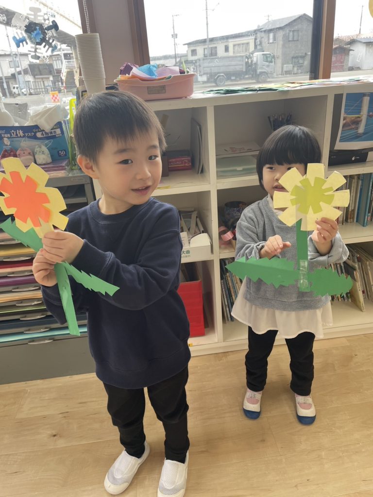 もうすぐ春になるということで、クラスの壁面も春にすることにしました🌼