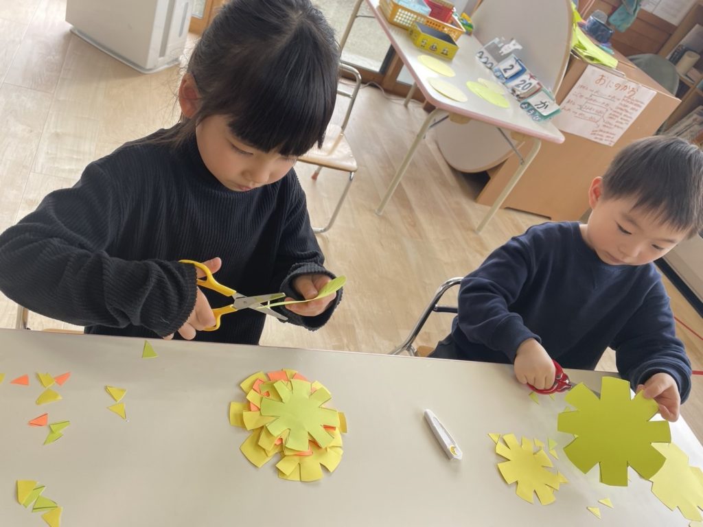 ハサミを上手に使って、タンポポの形を切ることができました🌟