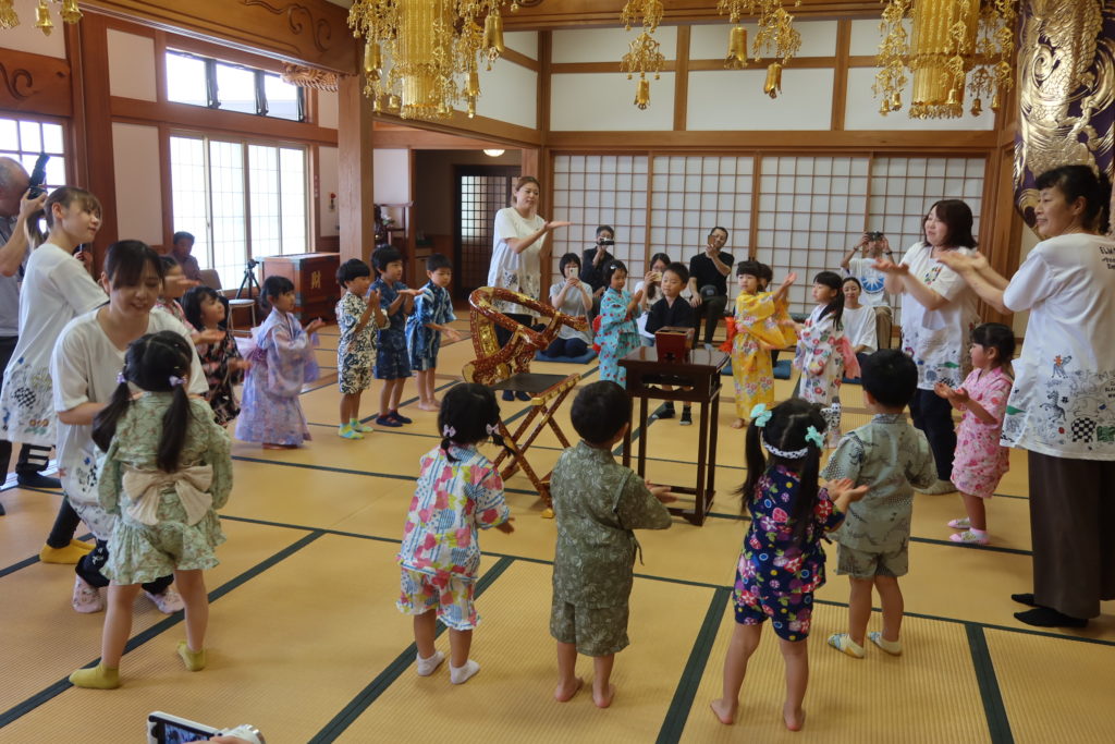 本堂では、★年長組さんの献灯献花💐 ★みんなで歌う『♪たのしいおぼん』 ★みたままつりの踊り がありました!