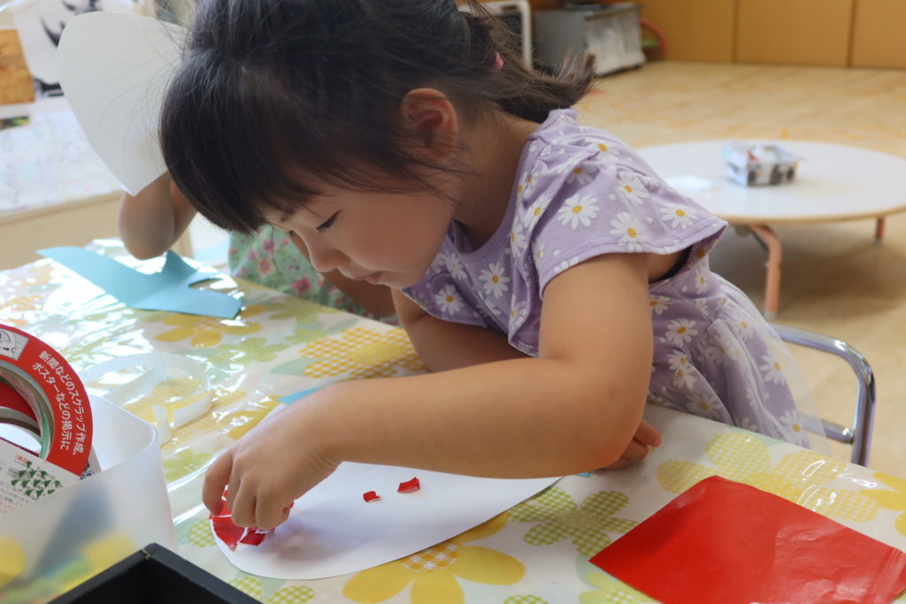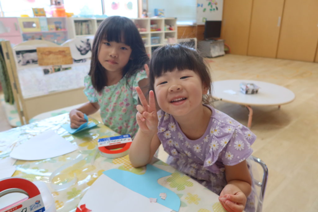 預かり保育に来ていたお友達はお外でプール遊びをしたり、室内でかき氷の製作をしたりして過ごしましたよ🍧