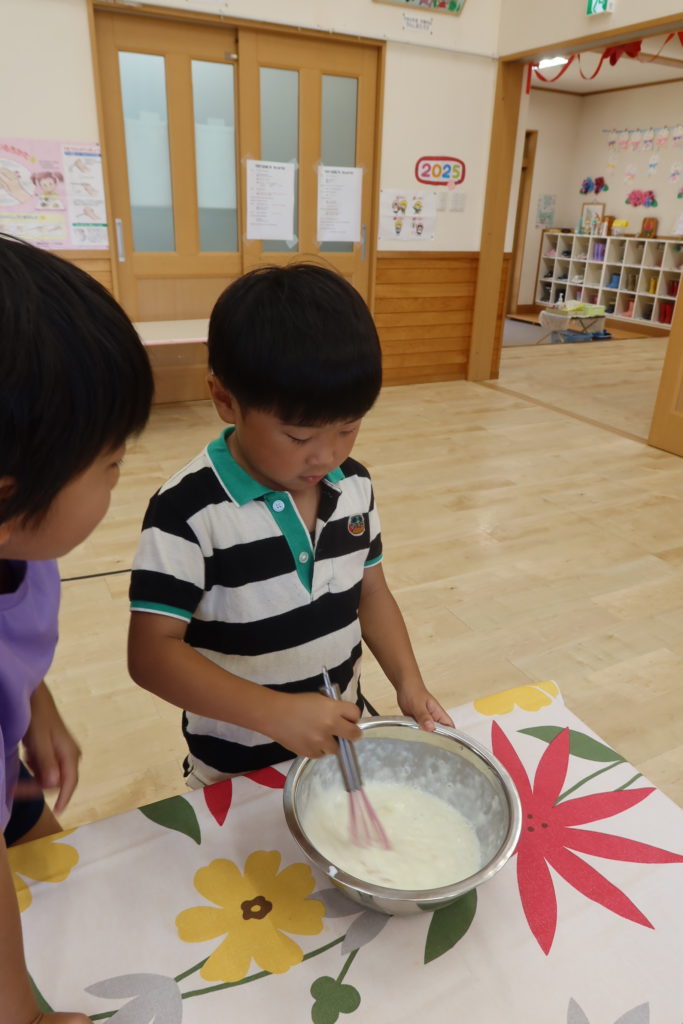 男の子と女の子に分かれて行いましたが、どちらも役割分担をしたり回数を数えたりしながら仲良く作っていた子どもたちです🍓🍑
