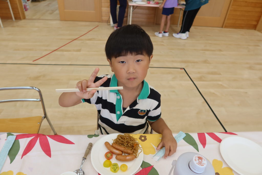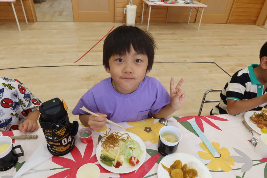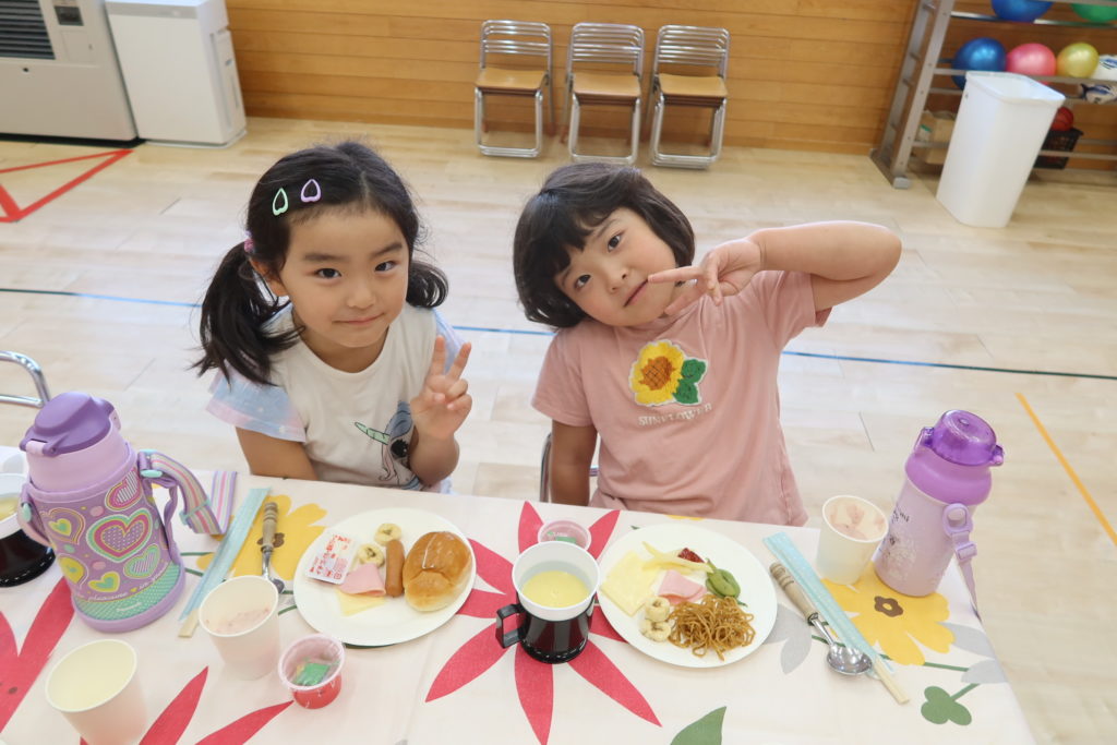 ご飯やパン、焼きそば、ポテトやウインナー、そしてみんなが作ったフルーチェも💓好きなものを選んで食べました😋