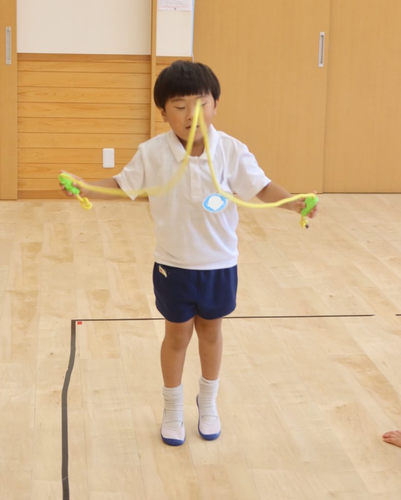 年長さんは縄跳びの練習や、鈴の音を鳴らさないようにジャンプしたり色々挑戦しましたよ💮
