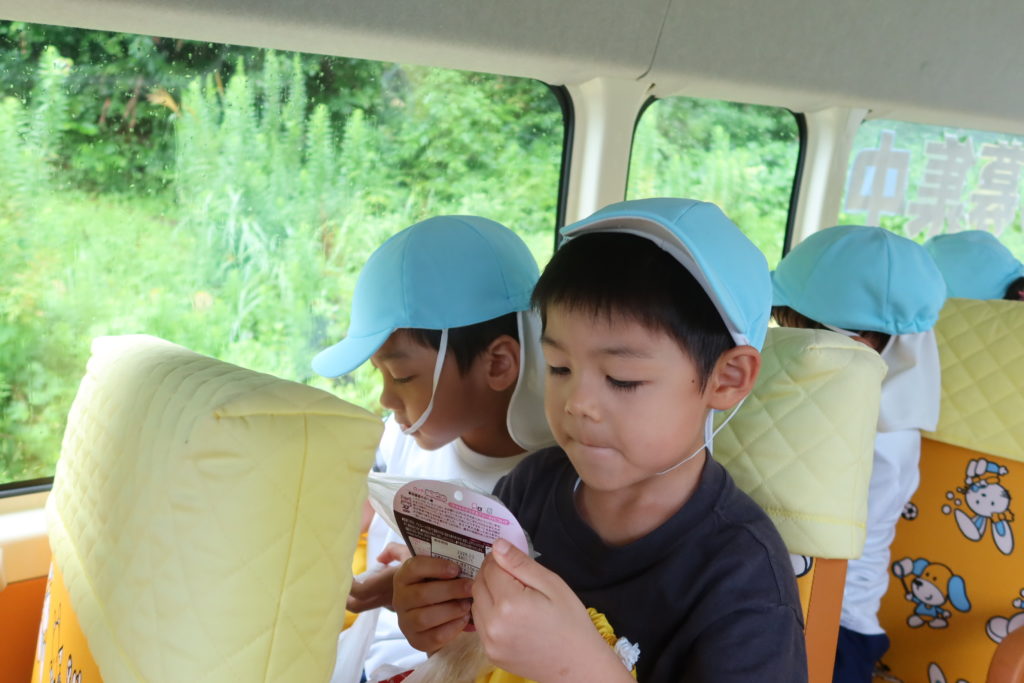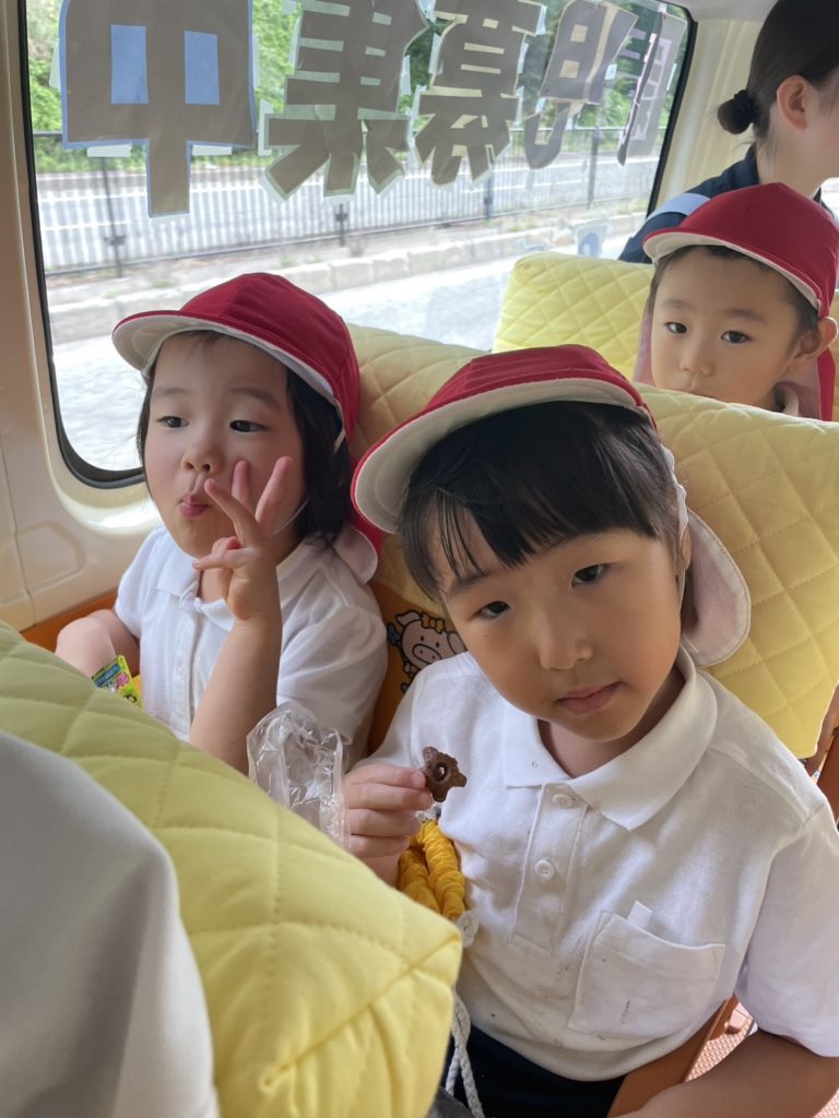 楽しみにしていた子どもたちはバスに乗って持ってきたおやつを嬉しそうに食べ、児童会館へ向かいました🚌