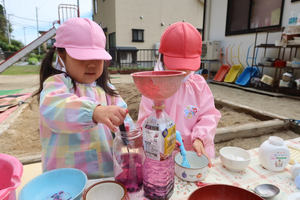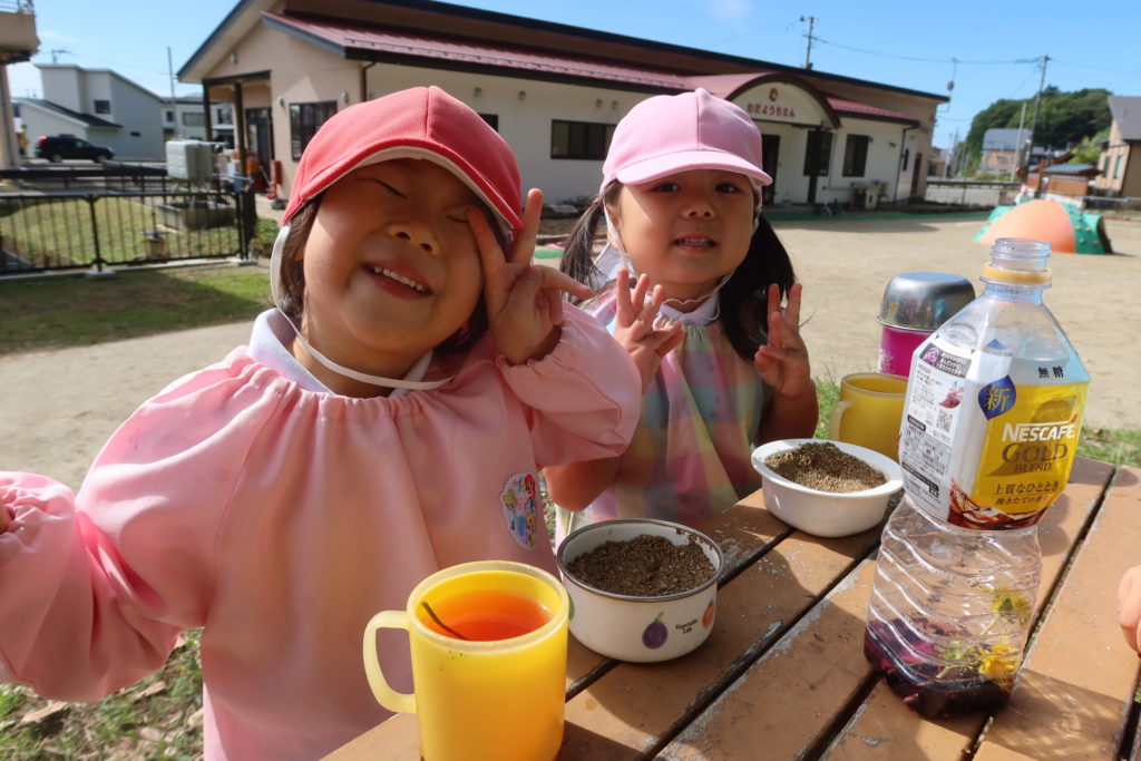 他にも外遊びでは、虫取りや木の実を使ってご馳走を作って楽しむ姿も見られます♪