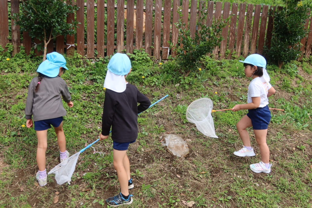 虫取りでは、トンボやバッタ、コオロギなどを捕まえて喜ぶ子どもたちですよ😆