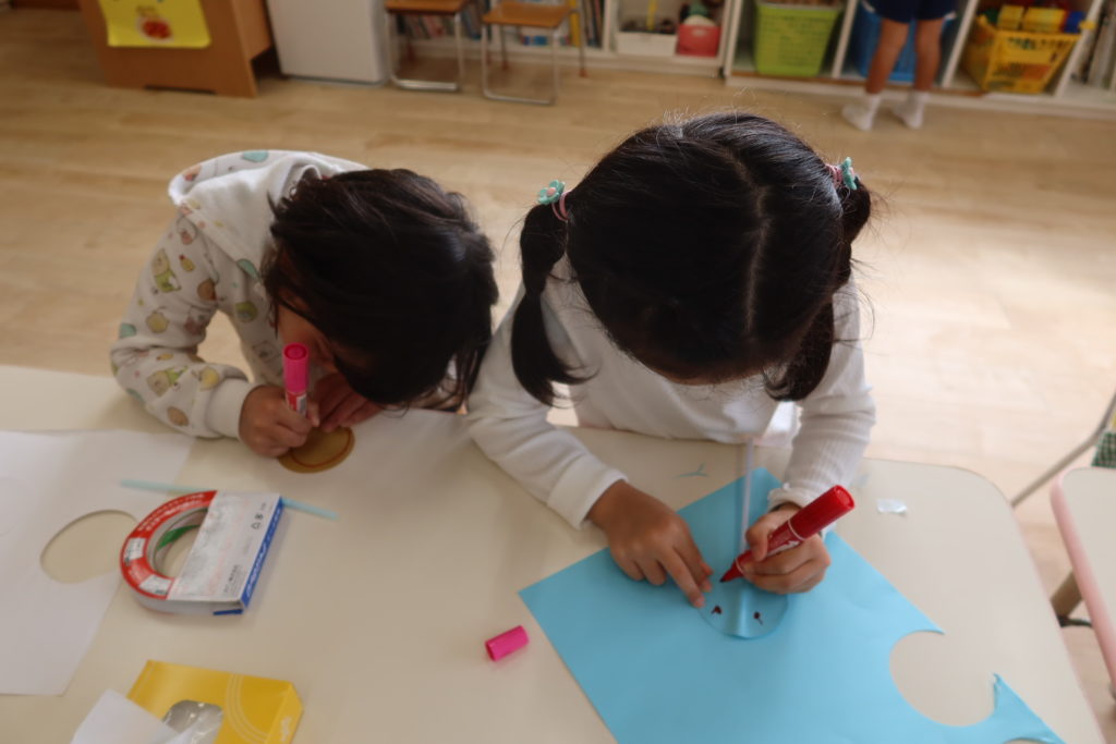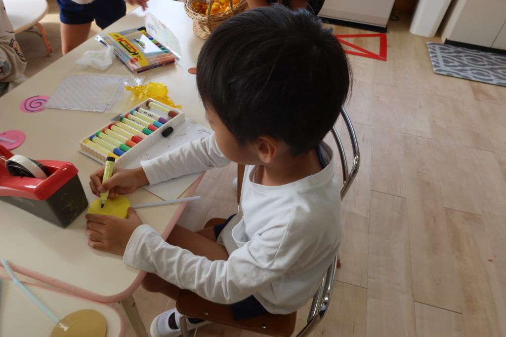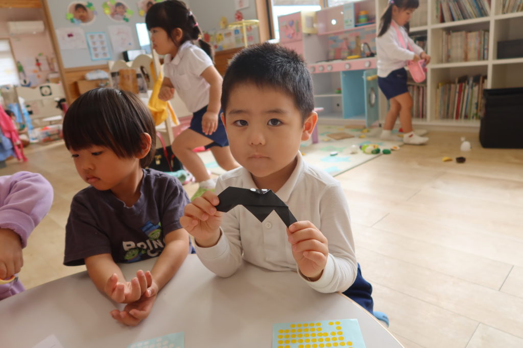 今日はハロウィンが近いということもあり、折り紙でお化けやコウモリなどを作ったり画用紙でキャンディーやクッキーを作って楽しみましたよ!
